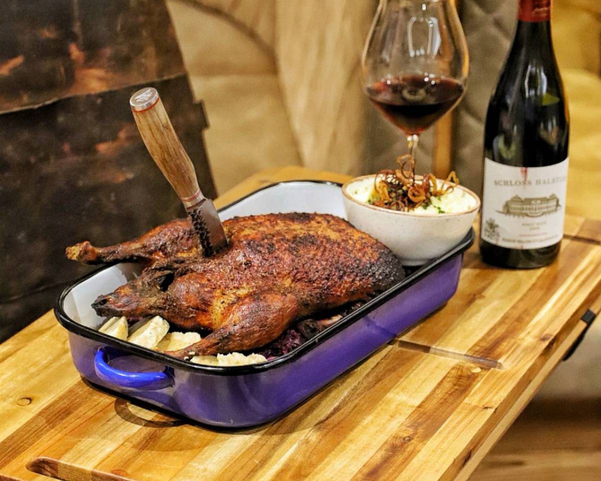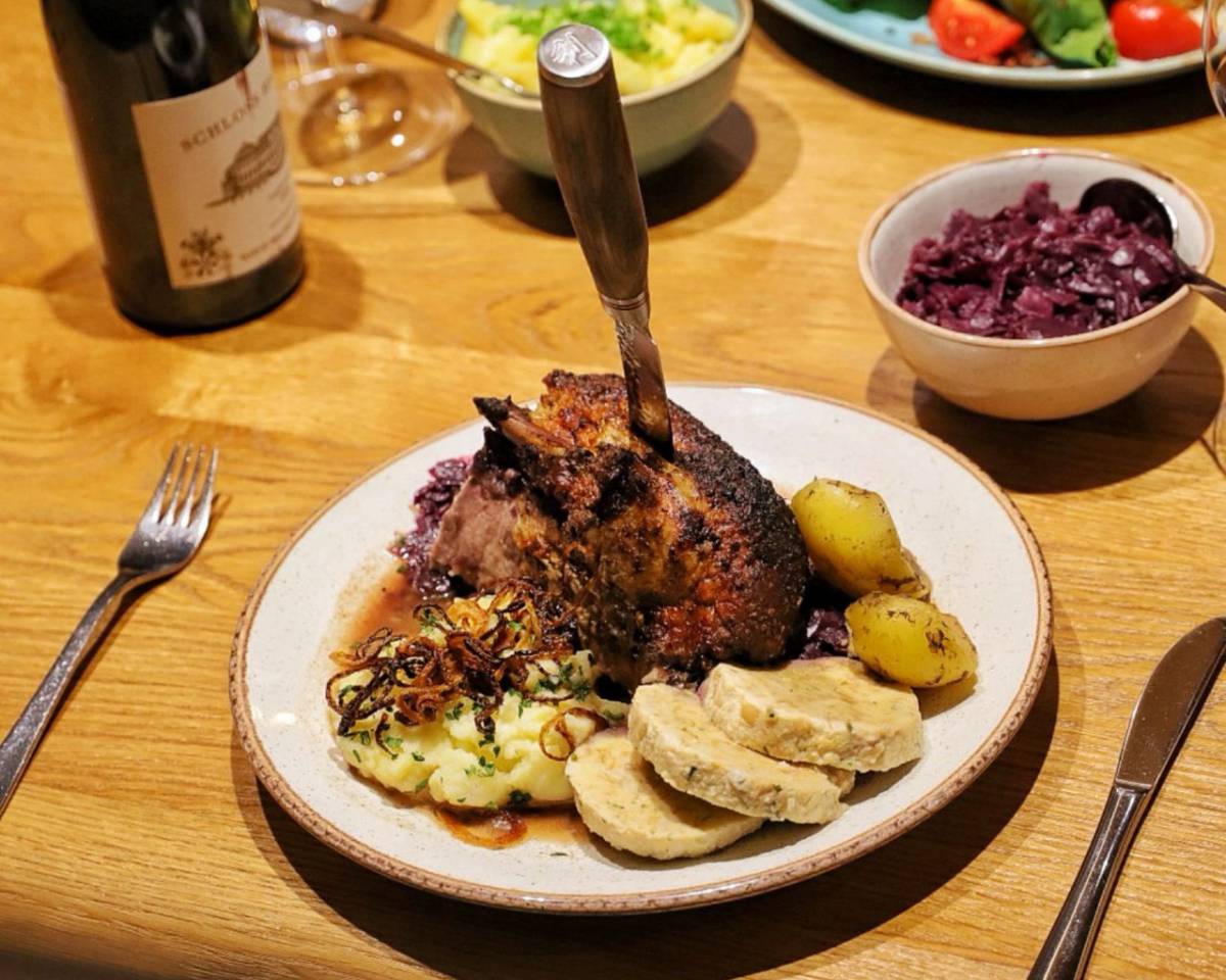 Jeden Sonntag ab 11 Uhr (und bis gor san) gibt's wieder die Portion Bauernente vom Lugeder mit Serviettenknödel, Kartoffelpüree und Blaukraut. 23,90€
